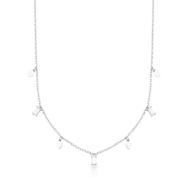 COLAR COM CRISTAIS RETANGULARES E FOLHA LISA – Elegância e Sofisticação em Prata 925