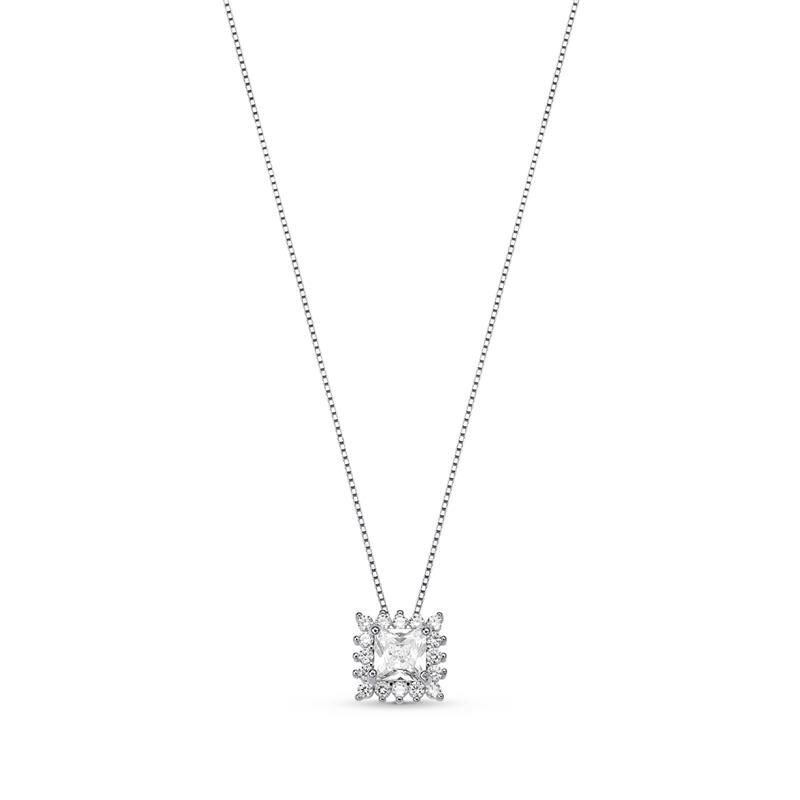O pingente quadrado, adornado com cristal e zircônia na cor branca, acrescenta um toque de sofisticação e estilo. A delicada malha do colar proporciona conforto e leveza, permitindo que você o use tanto no dia a dia quanto em momentos especiais.