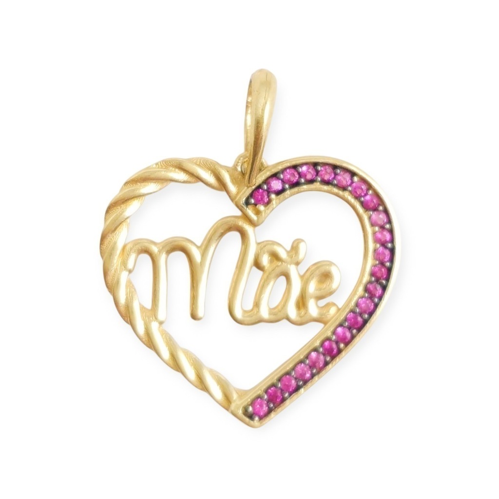 PINGENTE CORAÇÃO DE MÃE em Ouro 18k com Zircônias Vermelhas – Delicadeza e Significado